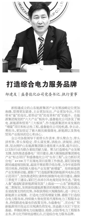 新组建成立的山东能源集团产业发展战略定位更加准确、管理更加紧凑、主业更加突出、产业更加专注,不但带来“量”的变化,更带动“效”的变革和“质”的提升。在能源集团规划的“六大产业”板块中,盛鲁能化公司涉及了煤电、新能源和贸易“三大板块”,作为能源集团未来发展的“增量”项目和标志性工程,面对新形势、新任务、新目标,盛鲁能化公司抢机遇、争主动、勇担当,更加坚定了做大做优做强煤电、新能源以及售电贸易产业板块的信心和决心。